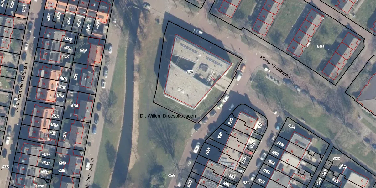 Dr. Willem Dreesplantsoen 32 is gelegen op kadastraal perceel HLM02T4156. Deze kadastrale aanduiding is uniek en wordt gebruikt door het Kadaster om eigendomsrechten en andere zakelijke rechten vast te leggen. Het perceel maakt onderdeel uit van de kadastrale gemeente Haarlem.