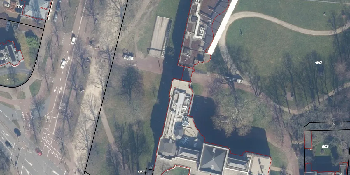 Het perceel waarop Dreef 3 staat heeft een oppervlakte van 2,4 ha. Dit is een zeer groot perceel. De perceeloppervlakte wordt geregistreerd door het Kadaster. Gedetailleerde informatie over de maten van dit perceel kunt u vinden in het rapport Kadastrale kaart met maatvoering van Dreef 3.