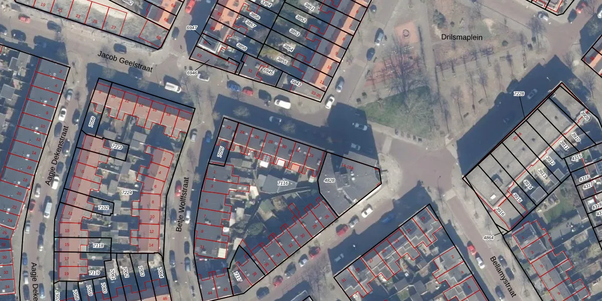 Drilsmaplein 12 is gelegen op kadastraal perceel HLM01E7116. Deze kadastrale aanduiding is uniek en wordt gebruikt door het Kadaster om eigendomsrechten en andere zakelijke rechten vast te leggen. Het perceel maakt onderdeel uit van de kadastrale gemeente Haarlem.