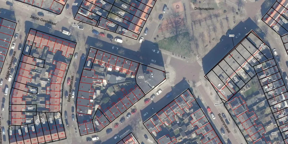 Drilsmaplein 14-A is gelegen op kadastraal perceel HLM01E4828. Deze kadastrale aanduiding is uniek en wordt gebruikt door het Kadaster om eigendomsrechten en andere zakelijke rechten vast te leggen. Het perceel maakt onderdeel uit van de kadastrale gemeente Haarlem.