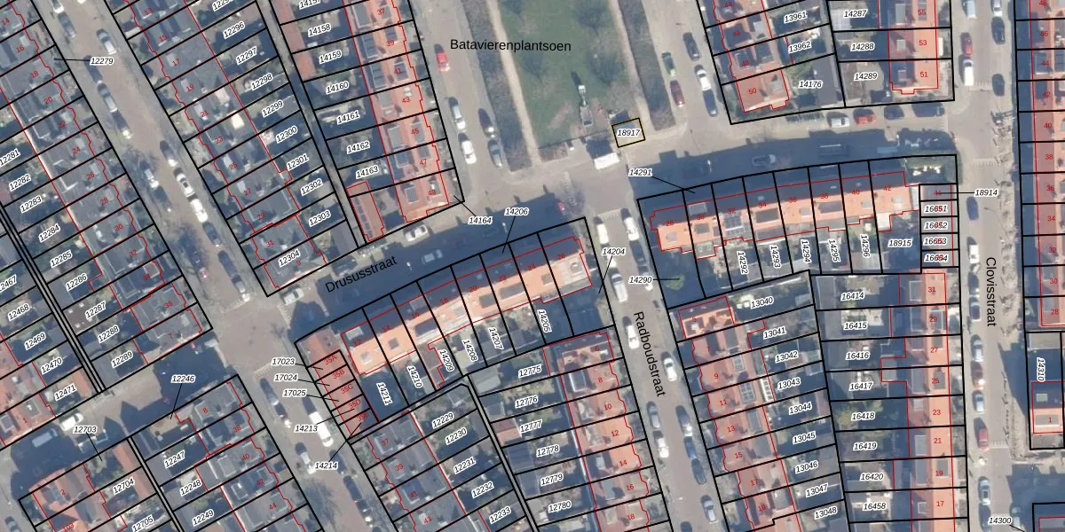 Het perceel waarop Drususstraat 24 staat heeft een oppervlakte van 119 m². Dit is een middelgroot perceel. De perceeloppervlakte wordt geregistreerd door het Kadaster. Gedetailleerde informatie over de maten van dit perceel kunt u vinden in het rapport Kadastrale kaart met maatvoering van Drususstraat 24.