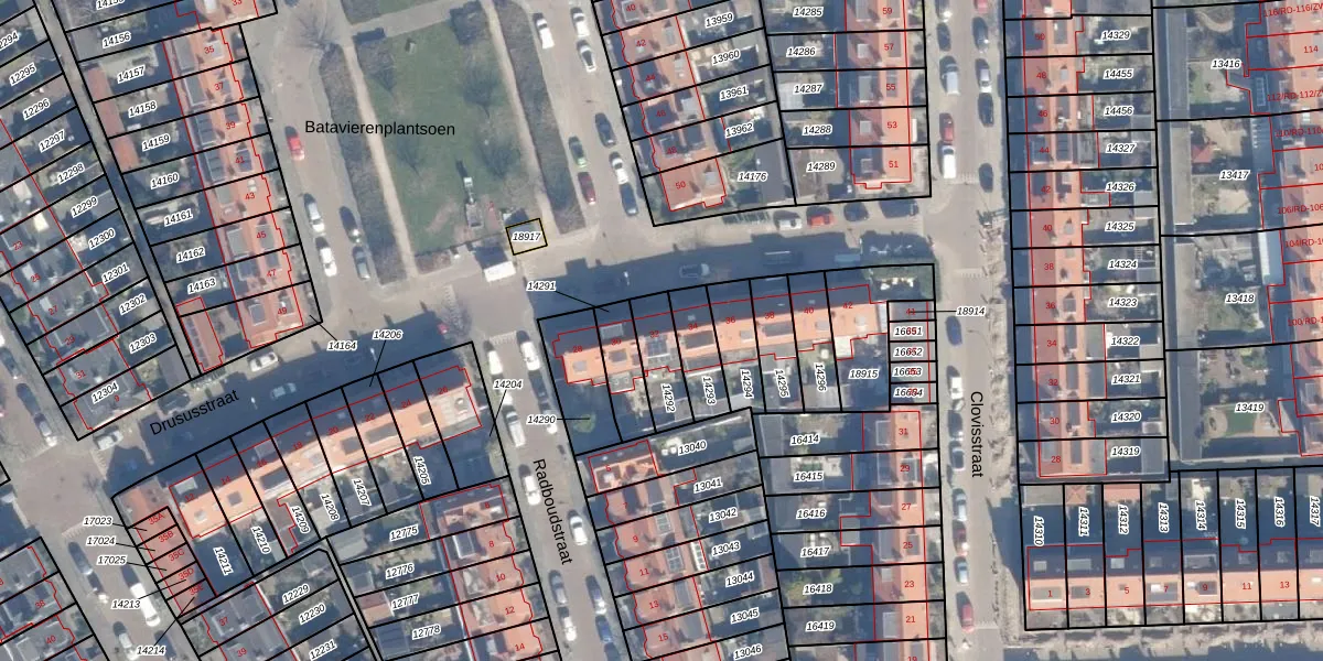 Drususstraat 32 is gelegen op kadastraal perceel STN01B14292. Deze kadastrale aanduiding is uniek en wordt gebruikt door het Kadaster om eigendomsrechten en andere zakelijke rechten vast te leggen. Het perceel maakt onderdeel uit van de kadastrale gemeente Schoten.