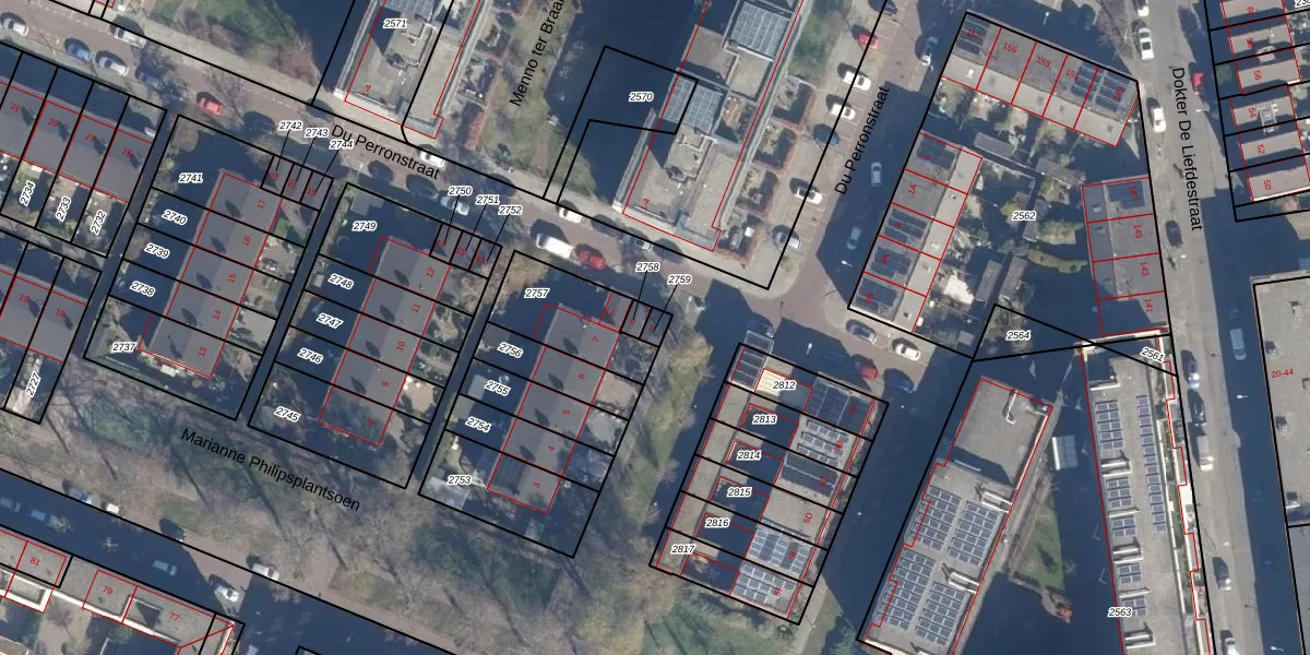 Het perceel waarop Du Perronstraat 7 staat heeft een oppervlakte van 18 m². Dit is een klein perceel. De perceeloppervlakte wordt geregistreerd door het Kadaster. Gedetailleerde informatie over de maten van dit perceel kunt u vinden in het rapport Kadastrale kaart met maatvoering van Du Perronstraat 7.