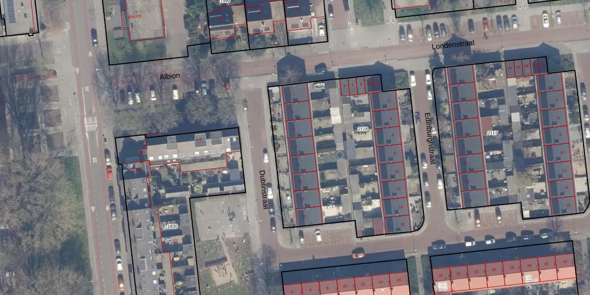 Het perceel waarop Dublinstraat 7 staat heeft een oppervlakte van 2380 m². Dit is een zeer groot perceel. De perceeloppervlakte wordt geregistreerd door het Kadaster. Gedetailleerde informatie over de maten van dit perceel kunt u vinden in het rapport Kadastrale kaart met maatvoering van Dublinstraat 7.
