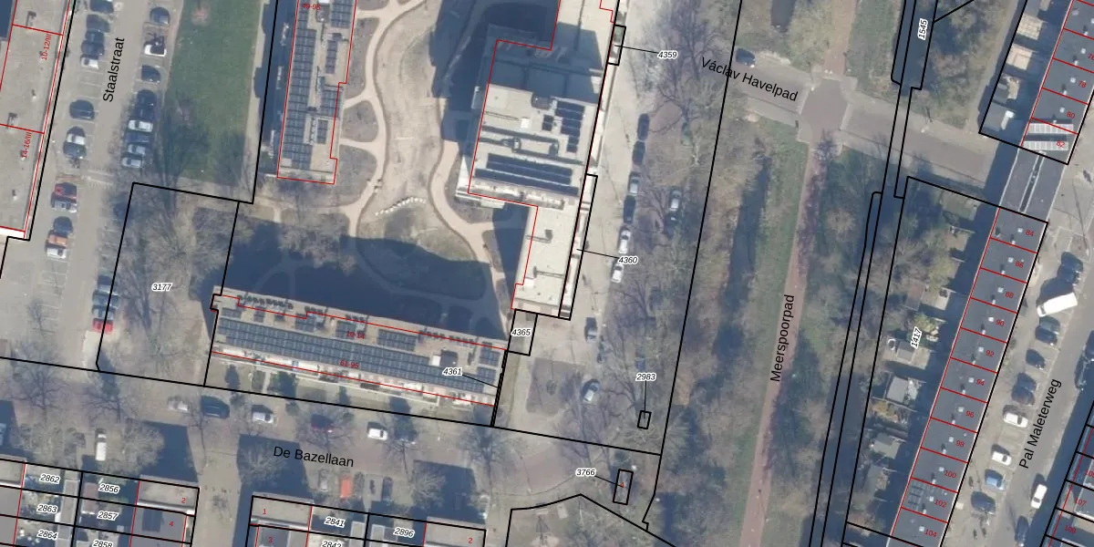 Het perceel waarop Dudokpark 16 staat heeft een oppervlakte van 8493 m². Dit is een zeer groot perceel. De perceeloppervlakte wordt geregistreerd door het Kadaster. Gedetailleerde informatie over de maten van dit perceel kunt u vinden in het rapport Kadastrale kaart met maatvoering van Dudokpark 16.