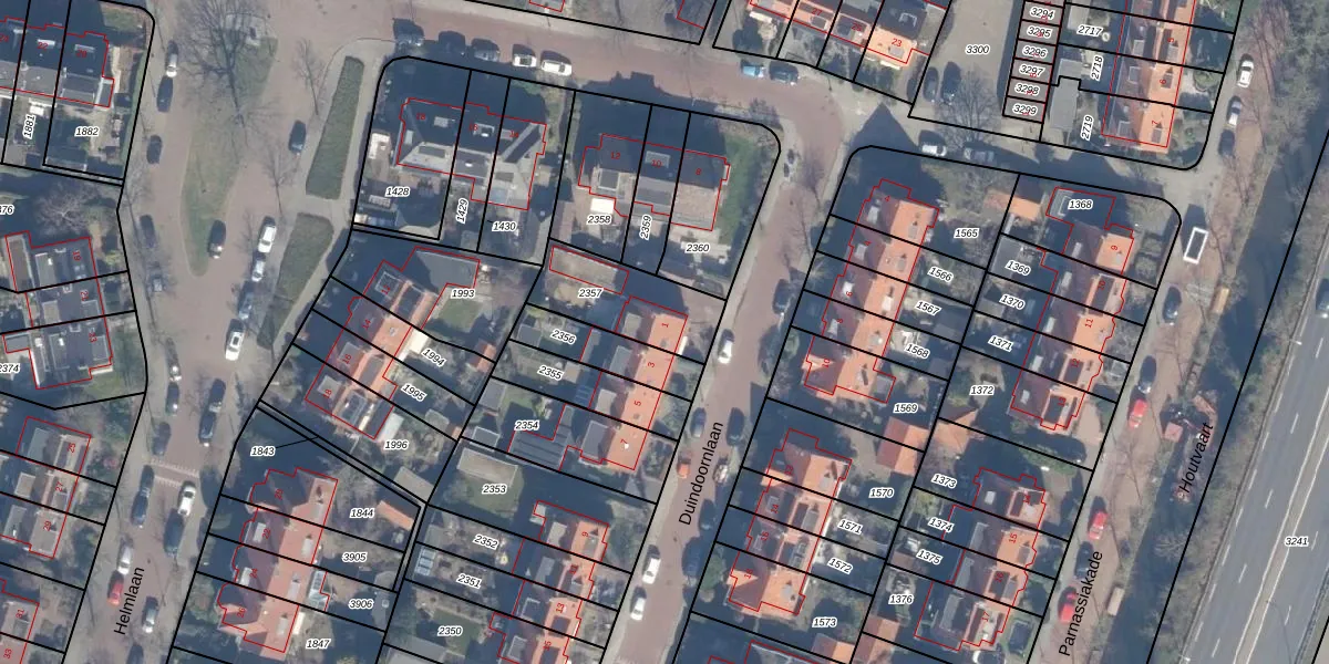 Duindoornlaan 1 is gelegen op kadastraal perceel HLM02T2357. Deze kadastrale aanduiding is uniek en wordt gebruikt door het Kadaster om eigendomsrechten en andere zakelijke rechten vast te leggen. Het perceel maakt onderdeel uit van de kadastrale gemeente Haarlem.