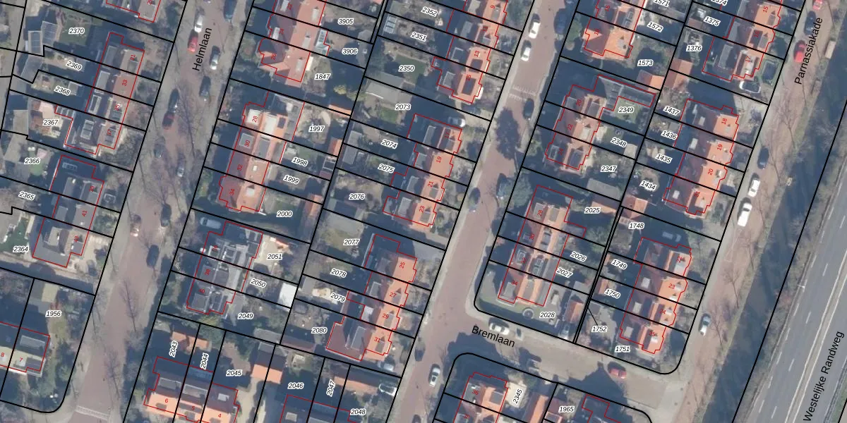 Gebruik de zoekbalk of klik op een perceel voor informatie over de adressen binnen dit perceel.