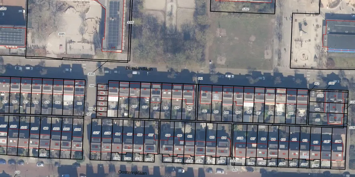 Het perceel waarop Duitslandlaan 54 staat heeft een oppervlakte van 123 m². Dit is een middelgroot perceel. De perceeloppervlakte wordt geregistreerd door het Kadaster. Gedetailleerde informatie over de maten van dit perceel kunt u vinden in het rapport Kadastrale kaart met maatvoering van Duitslandlaan 54.