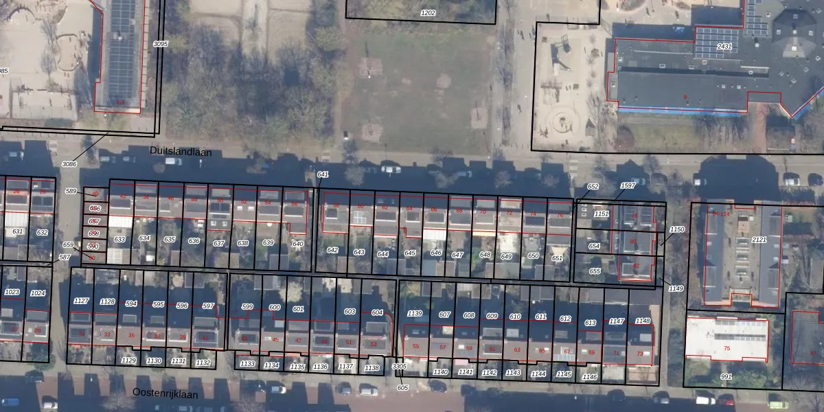 Het perceel waarop Duitslandlaan 64 staat heeft een oppervlakte van 122 m². Dit is een middelgroot perceel. De perceeloppervlakte wordt geregistreerd door het Kadaster. Gedetailleerde informatie over de maten van dit perceel kunt u vinden in het rapport Kadastrale kaart met maatvoering van Duitslandlaan 64.