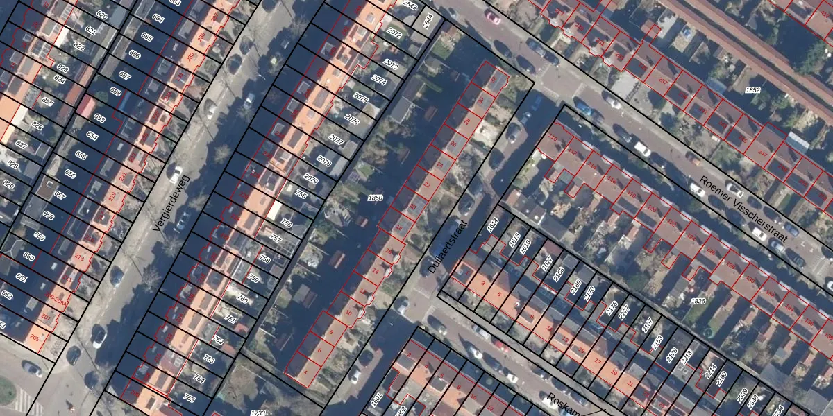 Het perceel waarop Dullaertstraat 20 staat heeft een oppervlakte van 2442 m². Dit is een zeer groot perceel. De perceeloppervlakte wordt geregistreerd door het Kadaster. Gedetailleerde informatie over de maten van dit perceel kunt u vinden in het rapport Kadastrale kaart met maatvoering van Dullaertstraat 20.