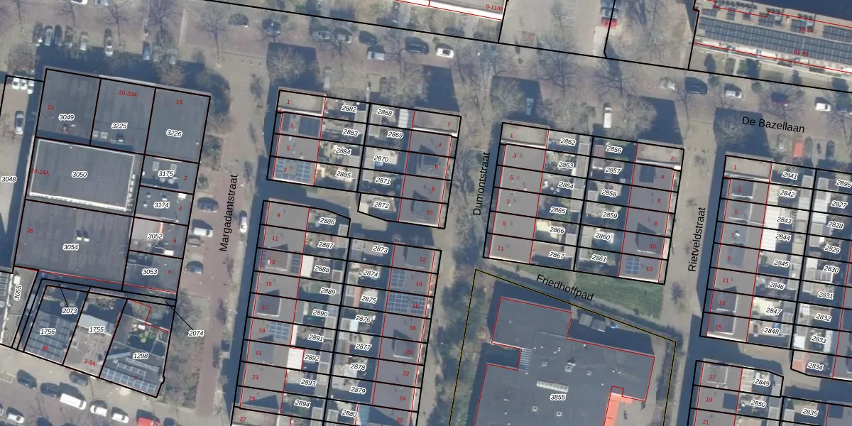 Het perceel waarop Dumontstraat 10 staat heeft een oppervlakte van 114 m². Dit is een middelgroot perceel. De perceeloppervlakte wordt geregistreerd door het Kadaster. Gedetailleerde informatie over de maten van dit perceel kunt u vinden in het rapport Kadastrale kaart met maatvoering van Dumontstraat 10.