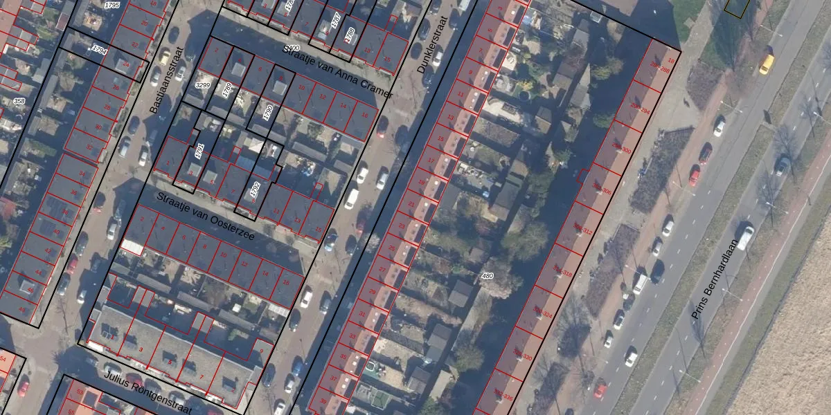 Het perceel waarop Dunklerstraat 21 staat heeft een oppervlakte van 6049 m². Dit is een zeer groot perceel. De perceeloppervlakte wordt geregistreerd door het Kadaster. Gedetailleerde informatie over de maten van dit perceel kunt u vinden in het rapport Kadastrale kaart met maatvoering van Dunklerstraat 21.