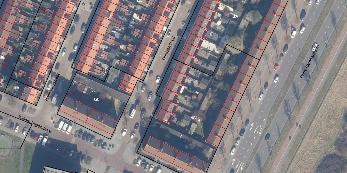 Het perceel waarop Dunklerstraat 73 staat heeft een oppervlakte van 2938 m². Dit is een zeer groot perceel. De perceeloppervlakte wordt geregistreerd door het Kadaster. Gedetailleerde informatie over de maten van dit perceel kunt u vinden in het rapport Kadastrale kaart met maatvoering van Dunklerstraat 73.