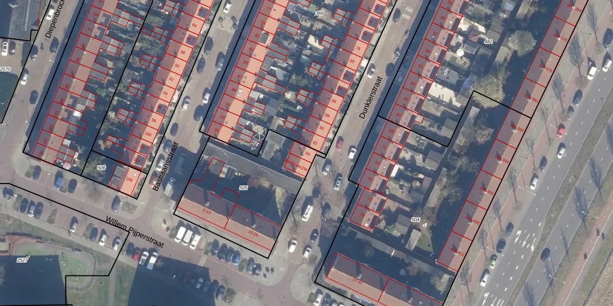 Het perceel waarop Dunklerstraat 94 staat heeft een oppervlakte van 1139 m². Dit is een zeer groot perceel. De perceeloppervlakte wordt geregistreerd door het Kadaster. Gedetailleerde informatie over de maten van dit perceel kunt u vinden in het rapport Kadastrale kaart met maatvoering van Dunklerstraat 94.