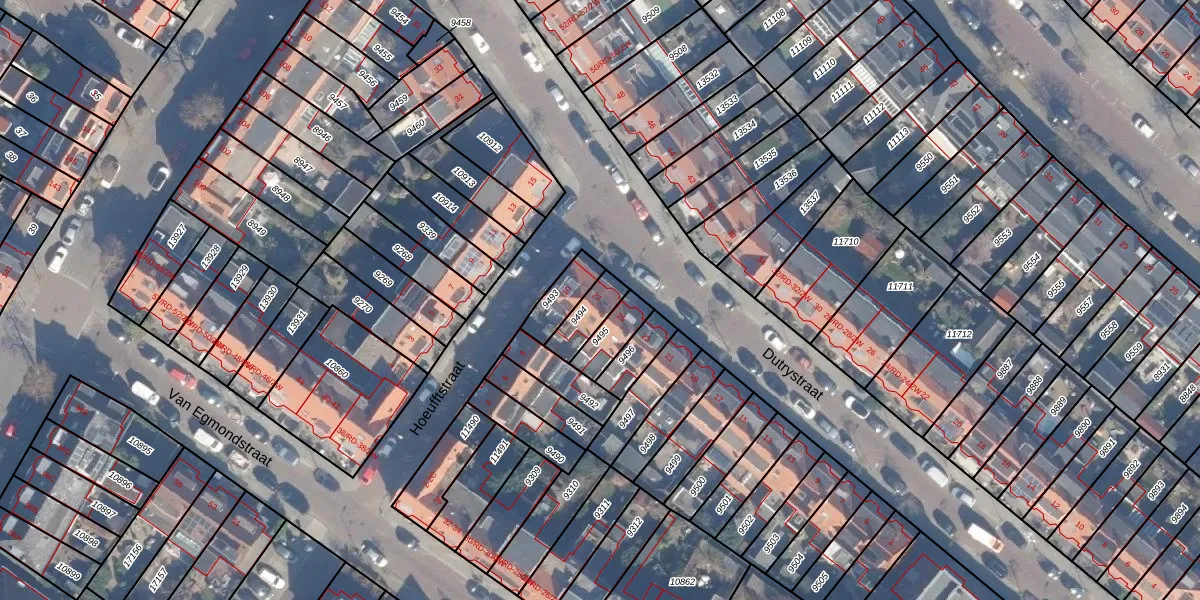 Het perceel waarop Dutrystraat 27 staat heeft een oppervlakte van 84 m². Dit is een klein perceel. De perceeloppervlakte wordt geregistreerd door het Kadaster. Gedetailleerde informatie over de maten van dit perceel kunt u vinden in het rapport Kadastrale kaart met maatvoering van Dutrystraat 27.