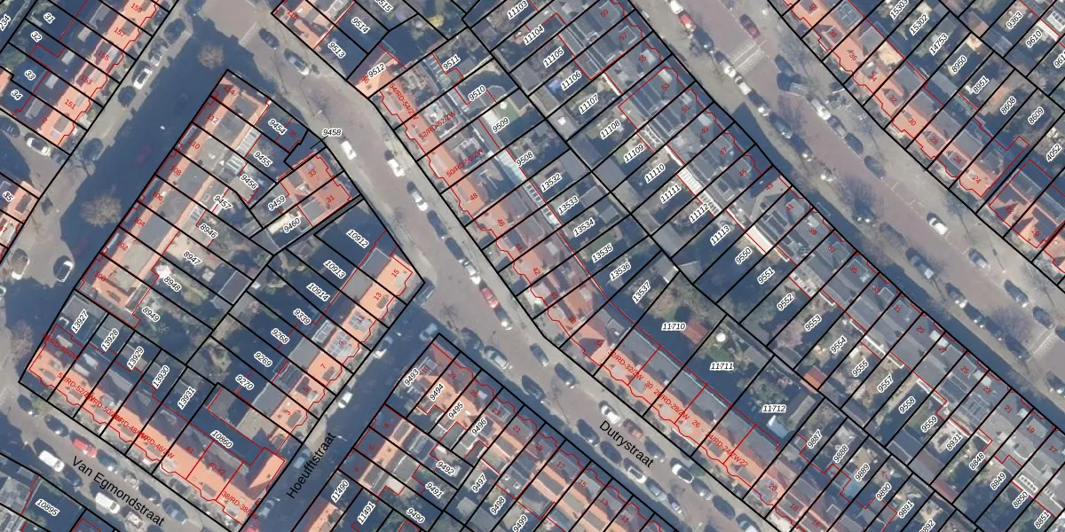 Het perceel waarop Dutrystraat 42 staat heeft een oppervlakte van 141 m². Dit is een middelgroot perceel. De perceeloppervlakte wordt geregistreerd door het Kadaster. Gedetailleerde informatie over de maten van dit perceel kunt u vinden in het rapport Kadastrale kaart met maatvoering van Dutrystraat 42.