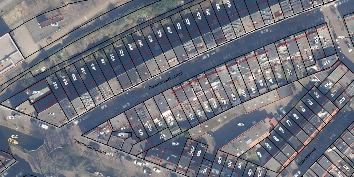 Duvenvoordestraat 33-ZW is gelegen op kadastraal perceel HLM01A2921. Deze kadastrale aanduiding is uniek en wordt gebruikt door het Kadaster om eigendomsrechten en andere zakelijke rechten vast te leggen. Het perceel maakt onderdeel uit van de kadastrale gemeente Haarlem.