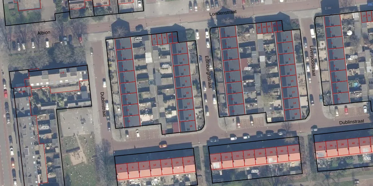 Het perceel waarop Edinburghstraat 10 staat heeft een oppervlakte van 2380 m². Dit is een zeer groot perceel. De perceeloppervlakte wordt geregistreerd door het Kadaster. Gedetailleerde informatie over de maten van dit perceel kunt u vinden in het rapport Kadastrale kaart met maatvoering van Edinburghstraat 10.
