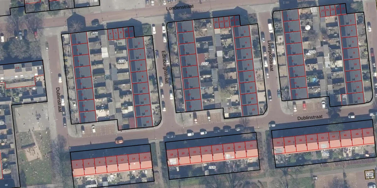 Het perceel waarop Edinburghstraat 13 staat heeft een oppervlakte van 2410 m². Dit is een zeer groot perceel. De perceeloppervlakte wordt geregistreerd door het Kadaster. Gedetailleerde informatie over de maten van dit perceel kunt u vinden in het rapport Kadastrale kaart met maatvoering van Edinburghstraat 13.