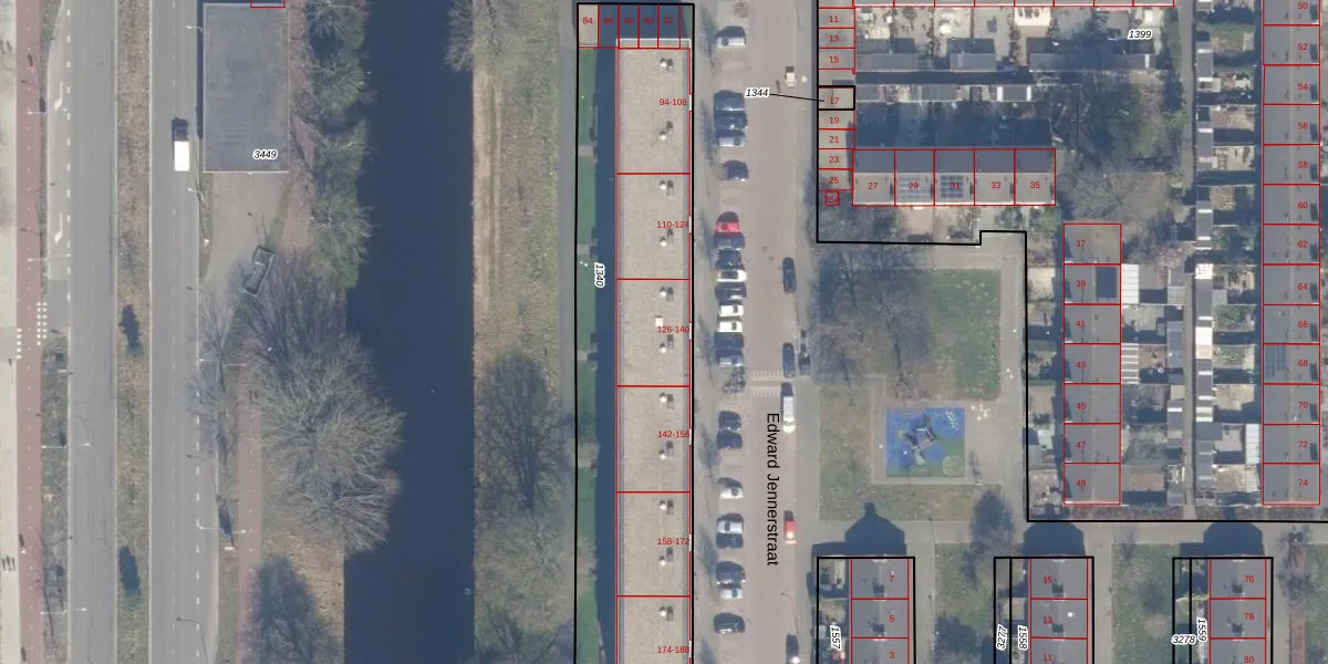Het perceel waarop Edward Jennerstraat 126 staat heeft een oppervlakte van 1900 m². Dit is een zeer groot perceel. De perceeloppervlakte wordt geregistreerd door het Kadaster. Gedetailleerde informatie over de maten van dit perceel kunt u vinden in het rapport Kadastrale kaart met maatvoering van Edward Jennerstraat 126.