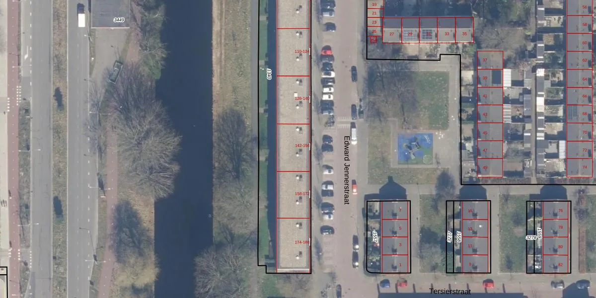 Het perceel waarop Edward Jennerstraat 154 staat heeft een oppervlakte van 1900 m². Dit is een zeer groot perceel. De perceeloppervlakte wordt geregistreerd door het Kadaster. Gedetailleerde informatie over de maten van dit perceel kunt u vinden in het rapport Kadastrale kaart met maatvoering van Edward Jennerstraat 154.
