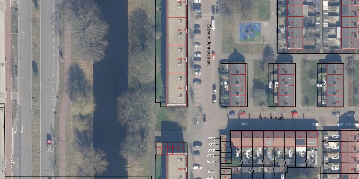 Edward Jennerstraat 184 is gelegen op kadastraal perceel HLM02Q1340. Deze kadastrale aanduiding is uniek en wordt gebruikt door het Kadaster om eigendomsrechten en andere zakelijke rechten vast te leggen. Het perceel maakt onderdeel uit van de kadastrale gemeente Haarlem.