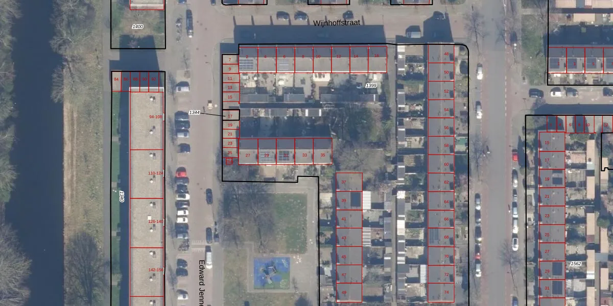 Het perceel waarop Edward Jennerstraat 33 staat heeft een oppervlakte van 5615 m². Dit is een zeer groot perceel. De perceeloppervlakte wordt geregistreerd door het Kadaster. Gedetailleerde informatie over de maten van dit perceel kunt u vinden in het rapport Kadastrale kaart met maatvoering van Edward Jennerstraat 33.
