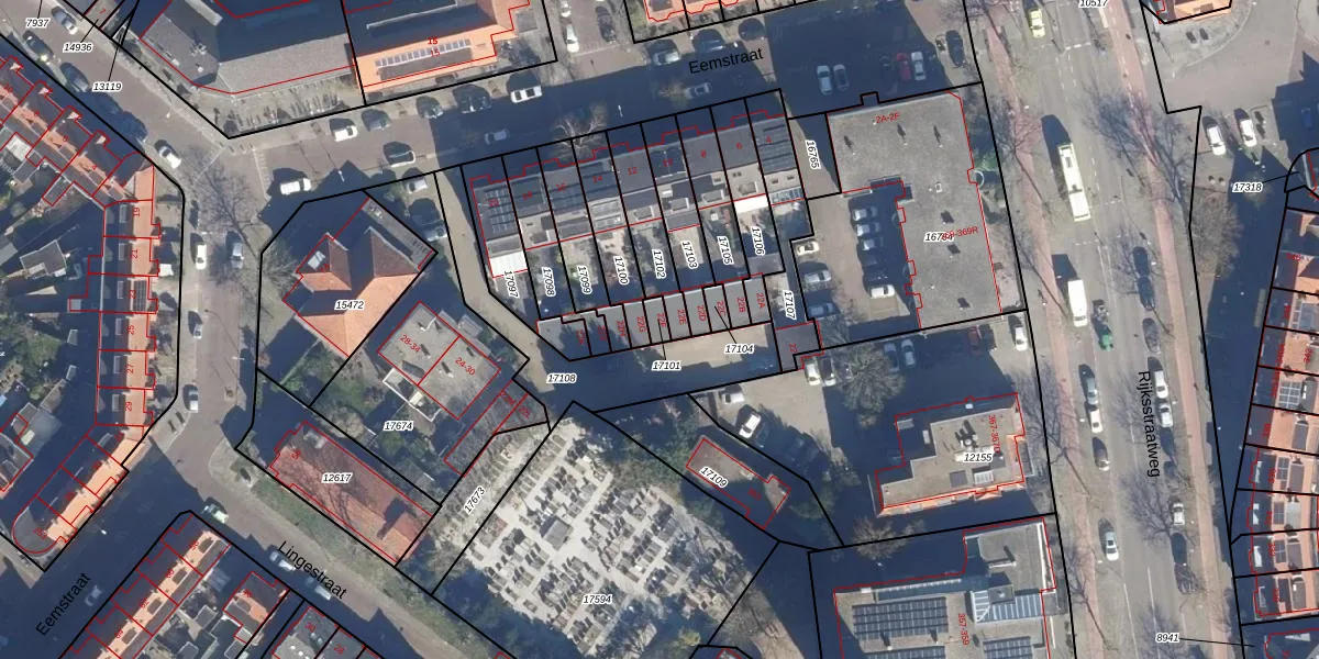 Het perceel waarop Eemstraat 22-F staat heeft een oppervlakte van 22 m². Dit is een klein perceel. De perceeloppervlakte wordt geregistreerd door het Kadaster. Gedetailleerde informatie over de maten van dit perceel kunt u vinden in het rapport Kadastrale kaart met maatvoering van Eemstraat 22-F.