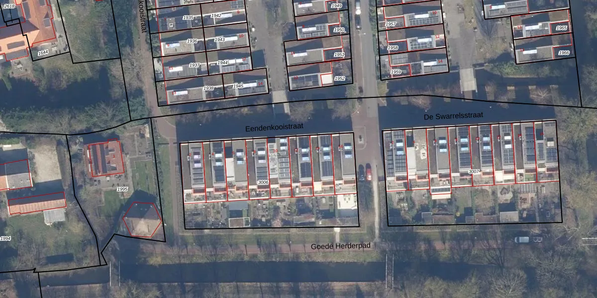 Het perceel waarop Eendenkooistraat 12 staat heeft een oppervlakte van 1763 m². Dit is een zeer groot perceel. De perceeloppervlakte wordt geregistreerd door het Kadaster. Gedetailleerde informatie over de maten van dit perceel kunt u vinden in het rapport Kadastrale kaart met maatvoering van Eendenkooistraat 12.
