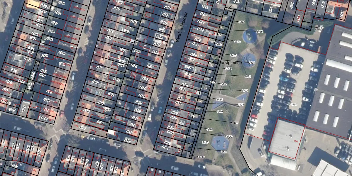 Het perceel waarop Eendrachtstraat 21 staat heeft een oppervlakte van 67 m². Dit is een klein perceel. De perceeloppervlakte wordt geregistreerd door het Kadaster. Gedetailleerde informatie over de maten van dit perceel kunt u vinden in het rapport Kadastrale kaart met maatvoering van Eendrachtstraat 21.