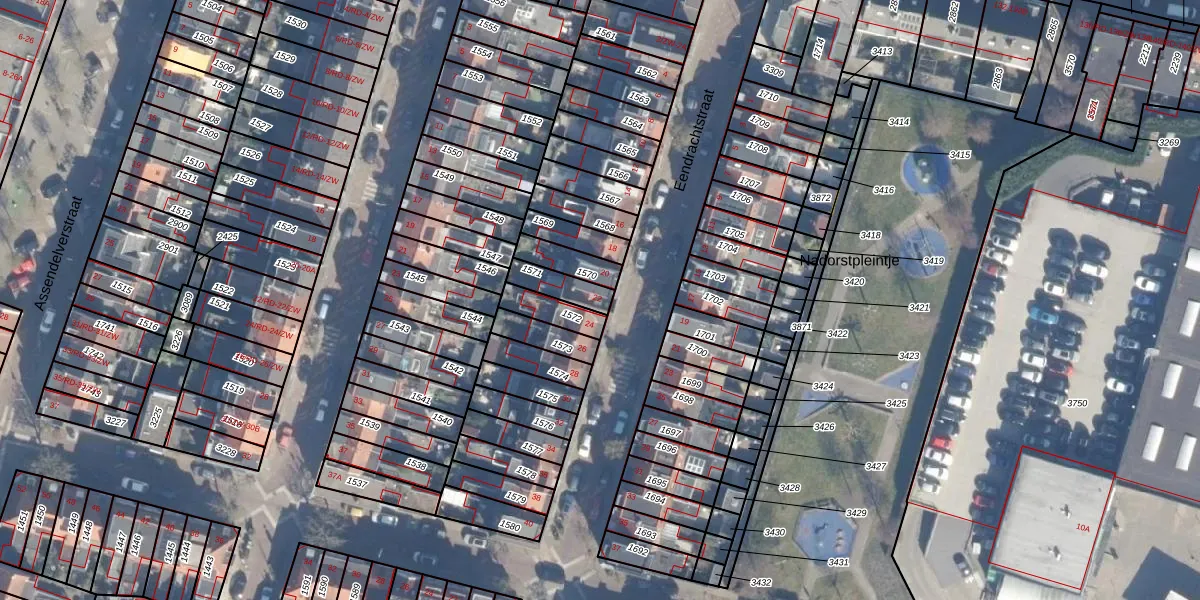 Het perceel waarop Eendrachtstraat 22 staat heeft een oppervlakte van 82 m². Dit is een klein perceel. De perceeloppervlakte wordt geregistreerd door het Kadaster. Gedetailleerde informatie over de maten van dit perceel kunt u vinden in het rapport Kadastrale kaart met maatvoering van Eendrachtstraat 22.