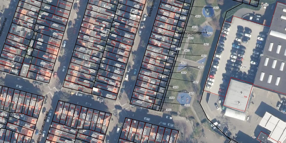 Het perceel waarop Eendrachtstraat 27 staat heeft een oppervlakte van 67 m². Dit is een klein perceel. De perceeloppervlakte wordt geregistreerd door het Kadaster. Gedetailleerde informatie over de maten van dit perceel kunt u vinden in het rapport Kadastrale kaart met maatvoering van Eendrachtstraat 27.
