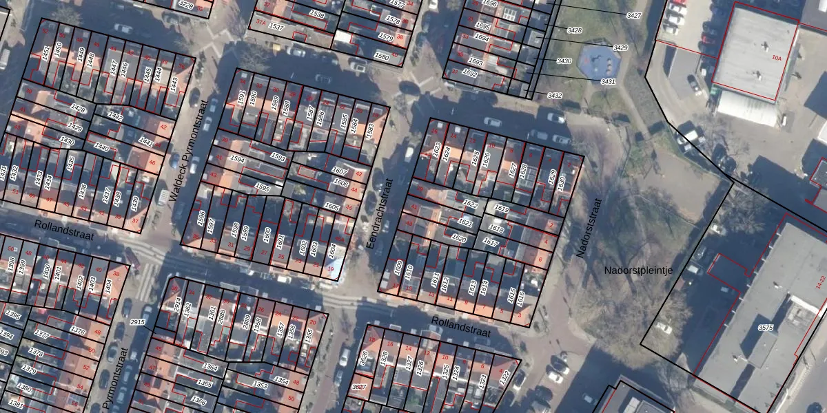 Het perceel waarop Eendrachtstraat 41 staat heeft een oppervlakte van 85 m². Dit is een klein perceel. De perceeloppervlakte wordt geregistreerd door het Kadaster. Gedetailleerde informatie over de maten van dit perceel kunt u vinden in het rapport Kadastrale kaart met maatvoering van Eendrachtstraat 41.