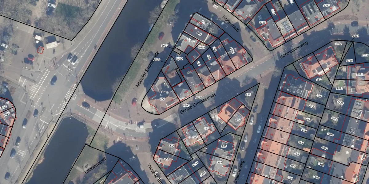Het perceel waarop Eerste Emmastraat 16-B staat heeft een oppervlakte van 89 m². Dit is een klein perceel. De perceeloppervlakte wordt geregistreerd door het Kadaster. Gedetailleerde informatie over de maten van dit perceel kunt u vinden in het rapport Kadastrale kaart met maatvoering van Eerste Emmastraat 16-B.