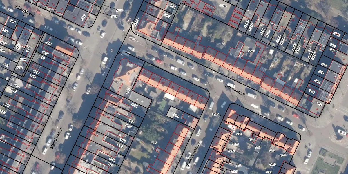 Het perceel waarop Eikenstraat 41 staat heeft een oppervlakte van 2590 m². Dit is een zeer groot perceel. De perceeloppervlakte wordt geregistreerd door het Kadaster. Gedetailleerde informatie over de maten van dit perceel kunt u vinden in het rapport Kadastrale kaart met maatvoering van Eikenstraat 41.