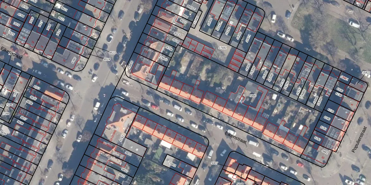Eikenstraat 56 is gelegen op kadastraal perceel STN01B5880. Deze kadastrale aanduiding is uniek en wordt gebruikt door het Kadaster om eigendomsrechten en andere zakelijke rechten vast te leggen. Het perceel maakt onderdeel uit van de kadastrale gemeente Schoten.