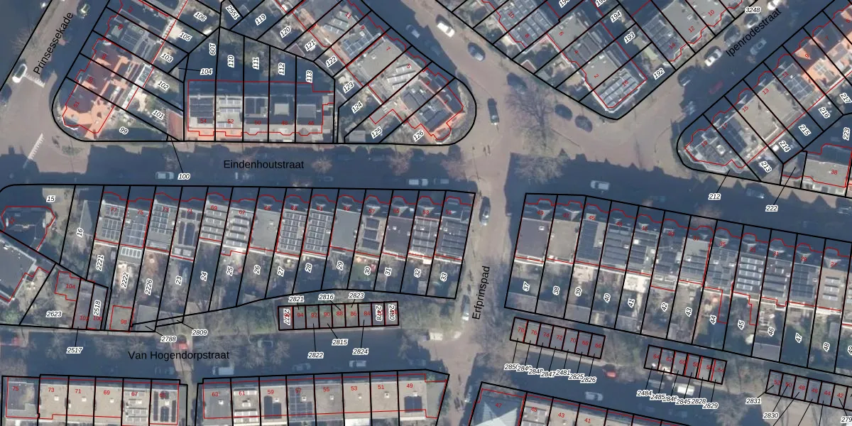 Gebruik de zoekbalk of klik op een perceel voor informatie over de adressen binnen dit perceel.