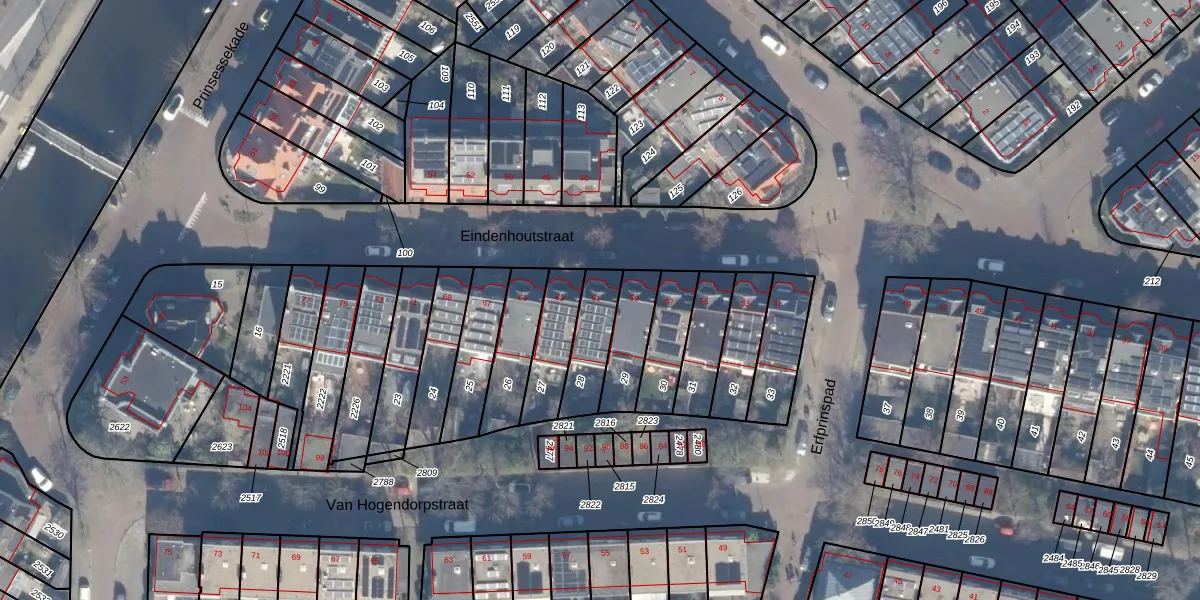 Gebruik de zoekbalk of klik op een perceel voor informatie over de adressen binnen dit perceel.