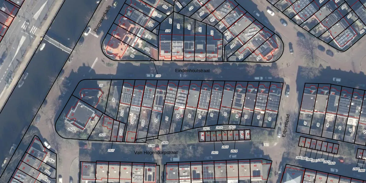 Gebruik de zoekbalk of klik op een perceel voor informatie over de adressen binnen dit perceel.