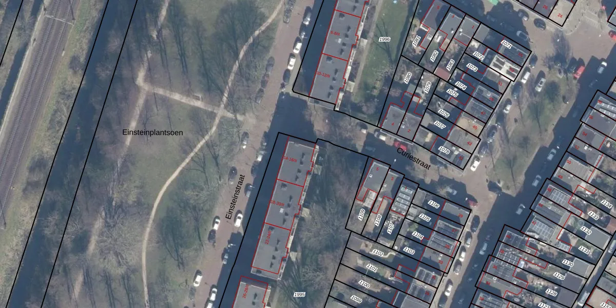 Het perceel waarop Einsteinstraat 14-II staat heeft een oppervlakte van 3582 m². Dit is een zeer groot perceel. De perceeloppervlakte wordt geregistreerd door het Kadaster. Gedetailleerde informatie over de maten van dit perceel kunt u vinden in het rapport Kadastrale kaart met maatvoering van Einsteinstraat 14-II.