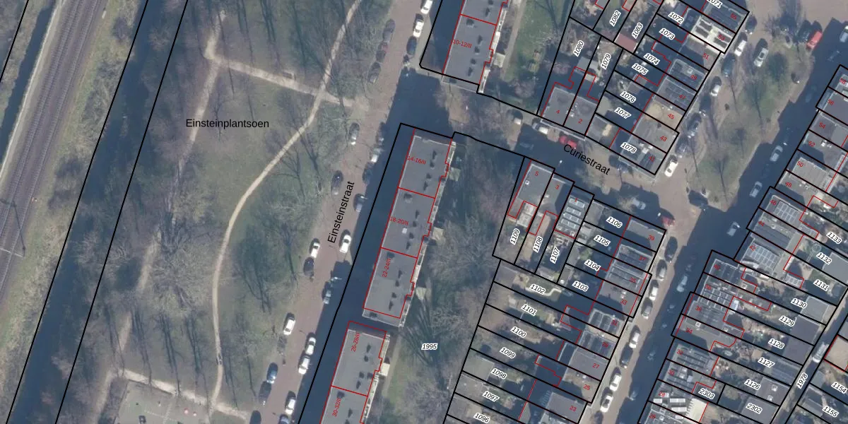 Het perceel waarop Einsteinstraat 18-II staat heeft een oppervlakte van 3582 m². Dit is een zeer groot perceel. De perceeloppervlakte wordt geregistreerd door het Kadaster. Gedetailleerde informatie over de maten van dit perceel kunt u vinden in het rapport Kadastrale kaart met maatvoering van Einsteinstraat 18-II.