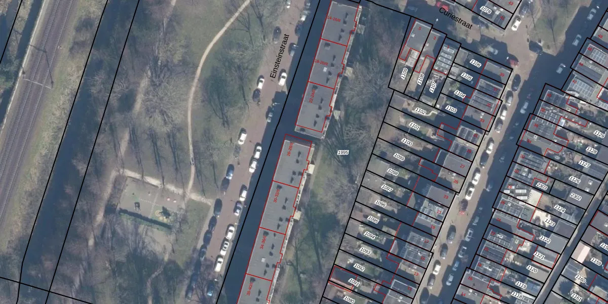 Het perceel waarop Einsteinstraat 26-II staat heeft een oppervlakte van 3582 m². Dit is een zeer groot perceel. De perceeloppervlakte wordt geregistreerd door het Kadaster. Gedetailleerde informatie over de maten van dit perceel kunt u vinden in het rapport Kadastrale kaart met maatvoering van Einsteinstraat 26-II.