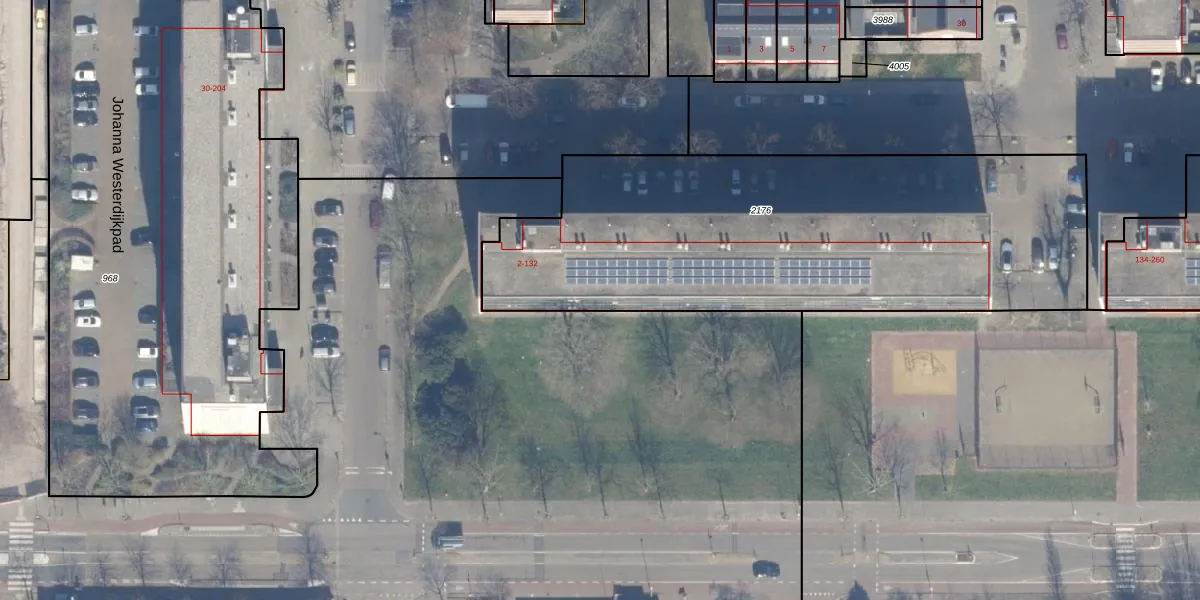 Het perceel waarop Ekamastraat 100 staat heeft een oppervlakte van 2474 m². Dit is een zeer groot perceel. De perceeloppervlakte wordt geregistreerd door het Kadaster. Gedetailleerde informatie over de maten van dit perceel kunt u vinden in het rapport Kadastrale kaart met maatvoering van Ekamastraat 100.