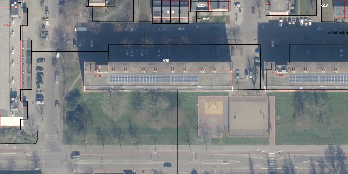 Het perceel waarop Ekamastraat 116 staat heeft een oppervlakte van 2474 m². Dit is een zeer groot perceel. De perceeloppervlakte wordt geregistreerd door het Kadaster. Gedetailleerde informatie over de maten van dit perceel kunt u vinden in het rapport Kadastrale kaart met maatvoering van Ekamastraat 116.