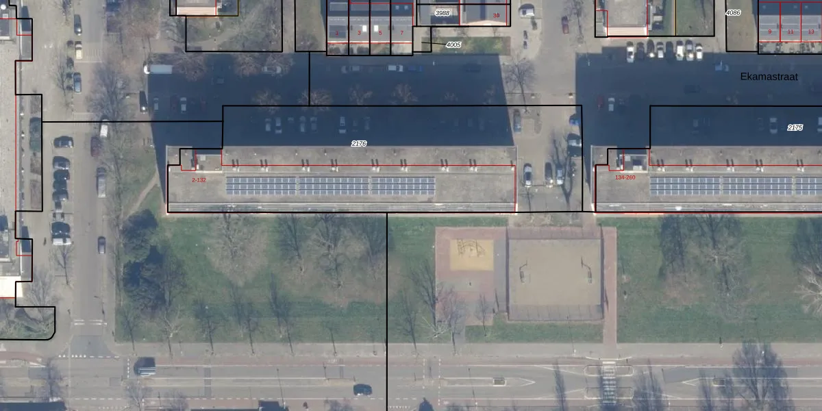 Het perceel waarop Ekamastraat 120 staat heeft een oppervlakte van 2474 m². Dit is een zeer groot perceel. De perceeloppervlakte wordt geregistreerd door het Kadaster. Gedetailleerde informatie over de maten van dit perceel kunt u vinden in het rapport Kadastrale kaart met maatvoering van Ekamastraat 120.