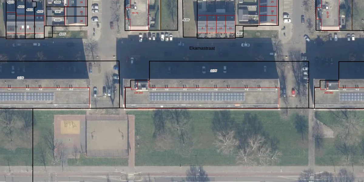 Het perceel waarop Ekamastraat 150 staat heeft een oppervlakte van 2470 m². Dit is een zeer groot perceel. De perceeloppervlakte wordt geregistreerd door het Kadaster. Gedetailleerde informatie over de maten van dit perceel kunt u vinden in het rapport Kadastrale kaart met maatvoering van Ekamastraat 150.