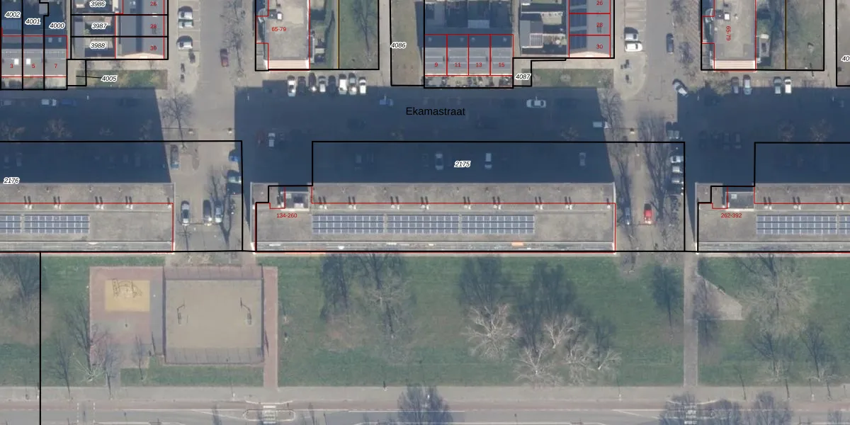 Het perceel waarop Ekamastraat 154 staat heeft een oppervlakte van 2470 m². Dit is een zeer groot perceel. De perceeloppervlakte wordt geregistreerd door het Kadaster. Gedetailleerde informatie over de maten van dit perceel kunt u vinden in het rapport Kadastrale kaart met maatvoering van Ekamastraat 154.