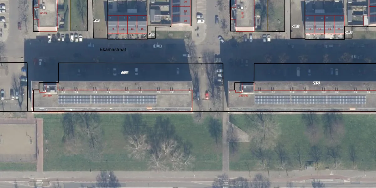 Ekamastraat 176 is gelegen op kadastraal perceel HLM02P2175. Deze kadastrale aanduiding is uniek en wordt gebruikt door het Kadaster om eigendomsrechten en andere zakelijke rechten vast te leggen. Het perceel maakt onderdeel uit van de kadastrale gemeente Haarlem.
