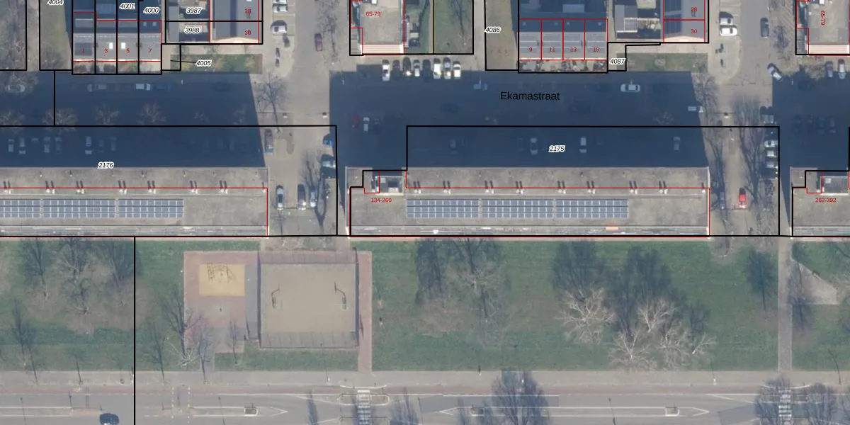 Ekamastraat 186 is gelegen op kadastraal perceel HLM02P2175. Deze kadastrale aanduiding is uniek en wordt gebruikt door het Kadaster om eigendomsrechten en andere zakelijke rechten vast te leggen. Het perceel maakt onderdeel uit van de kadastrale gemeente Haarlem.