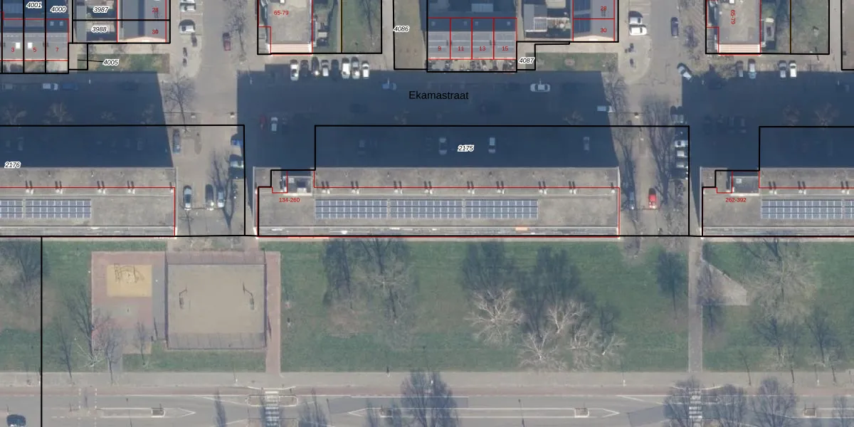Ekamastraat 196 is gelegen op kadastraal perceel HLM02P2175. Deze kadastrale aanduiding is uniek en wordt gebruikt door het Kadaster om eigendomsrechten en andere zakelijke rechten vast te leggen. Het perceel maakt onderdeel uit van de kadastrale gemeente Haarlem.